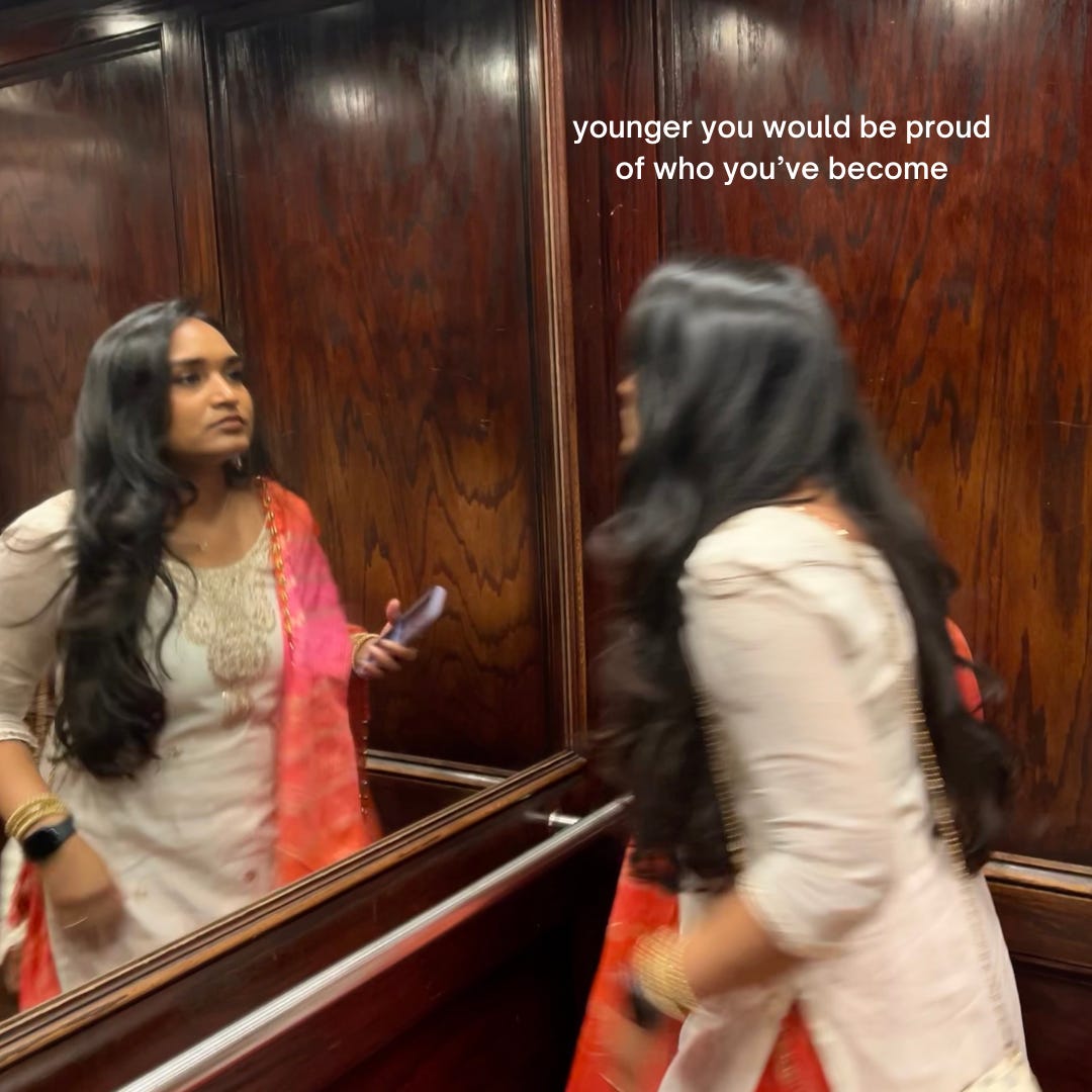 When I think back to younger me, I picture a girl who was always sketching out her dreams on paper, unsure of how they would come to life. I remember being obsessed with designing my first website in high school and changing it every single week because I was never satisfied. Younger me didn’t know much about where life would take her, but she had big aspirations. Now, when I look at everything I’ve built, from pursuing my education to creating Gulabi Mango, I realize how far I’ve come. The insecurities, the late nights, and the small wins all added up to something bigger. Younger me would be proud, not just because of the achievements, but because I’ve stayed true to my creativity and curiosity along the way.